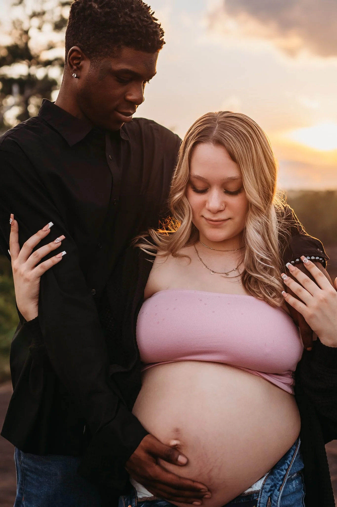 mother-father-couple-paternity-maternity-session-pregnancy-photoshoot-mom-dad-mountain-sunset